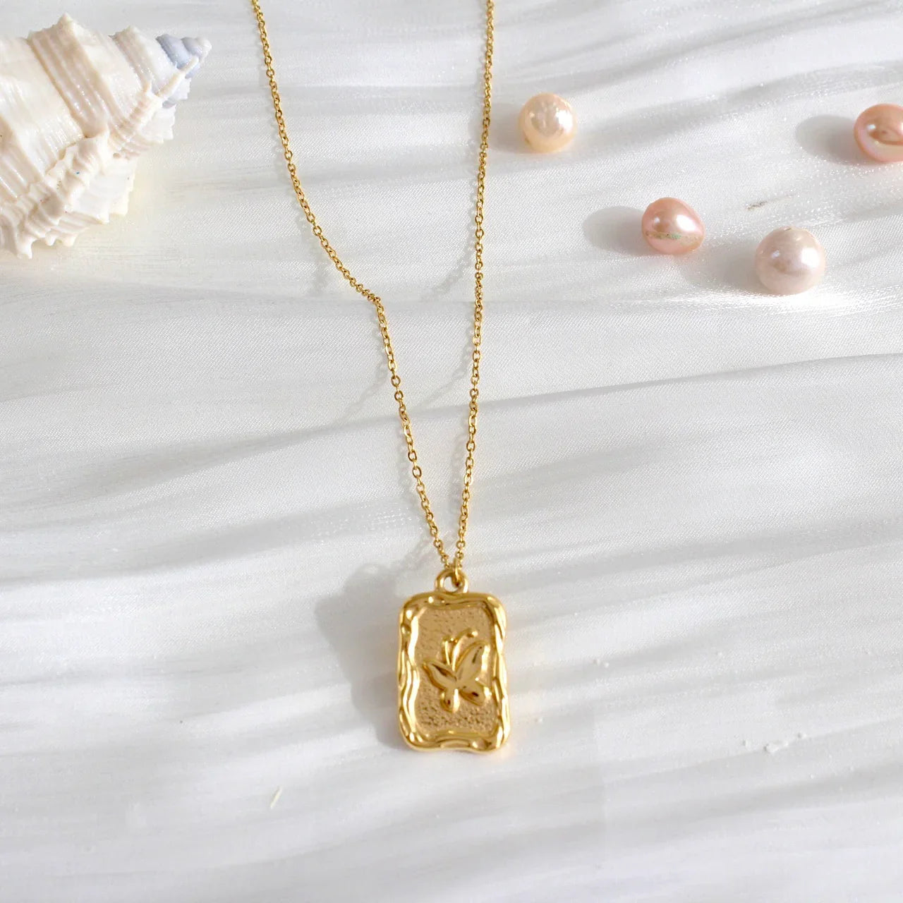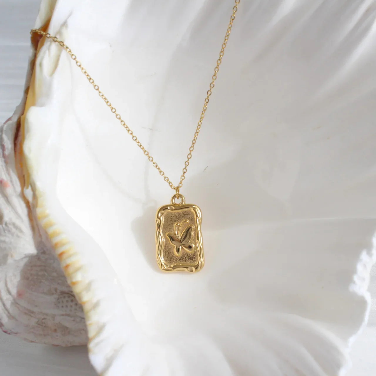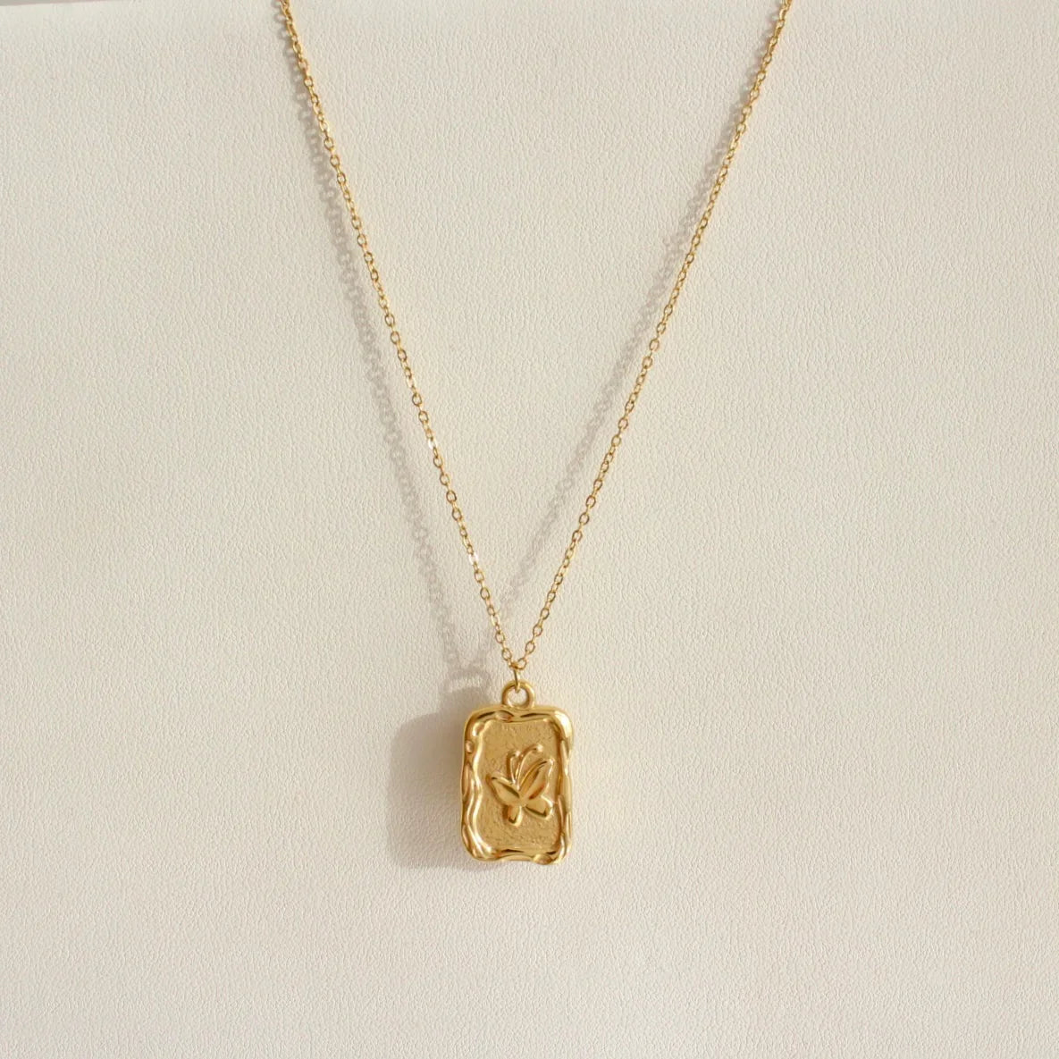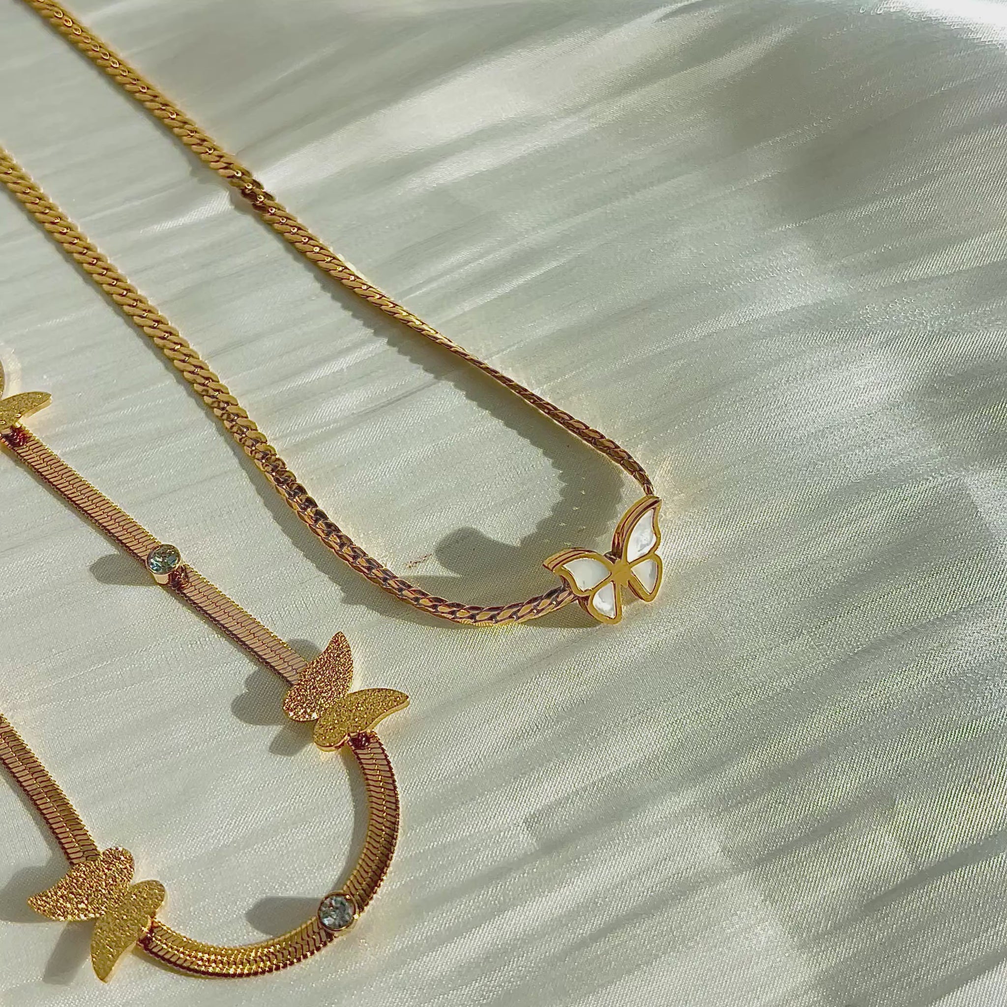 Allison, a delicate butterfly pendant in graceful movement, lends this necklace a special charm with its finely crafted details and harmonious shape. The pendant has been carefully polished and plated with genuine 18k gold – a gleaming highlight with timeless style.