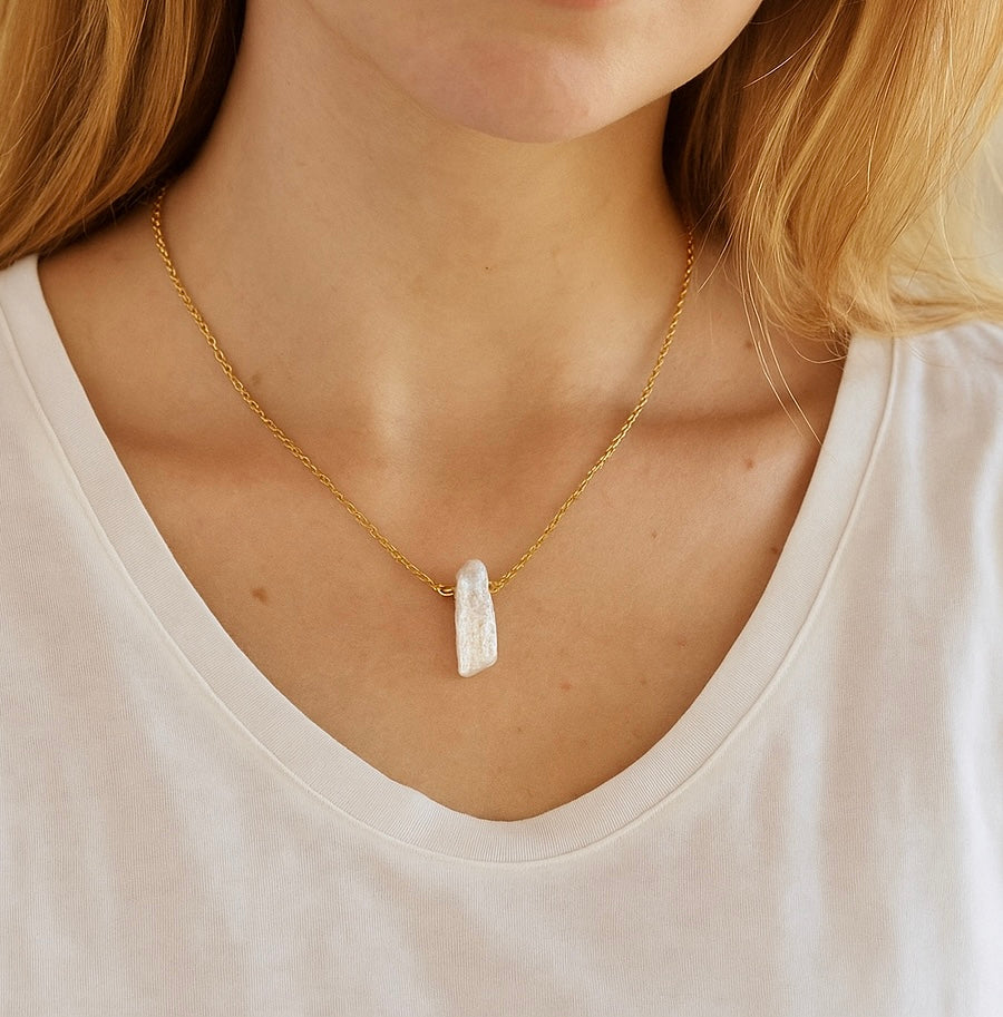 Anaya uses real natural freshwater pearls that have a slightly pink shimmer. Handcrafted on a classic 18k real gold chain, this is a chain you can't go wrong with if you love unique pieces.