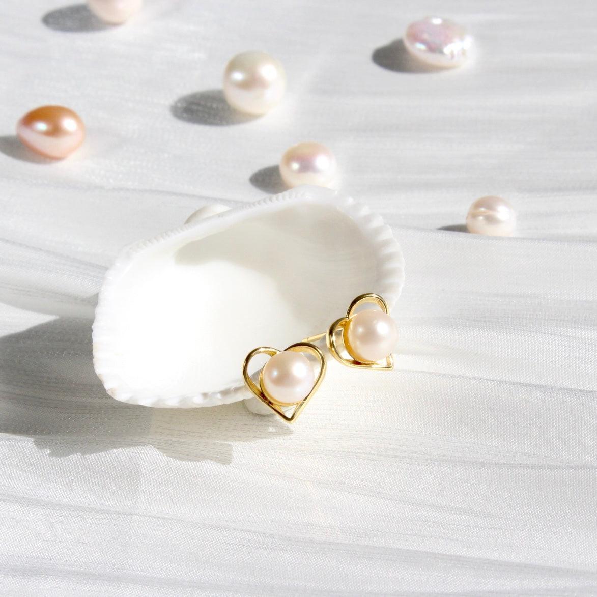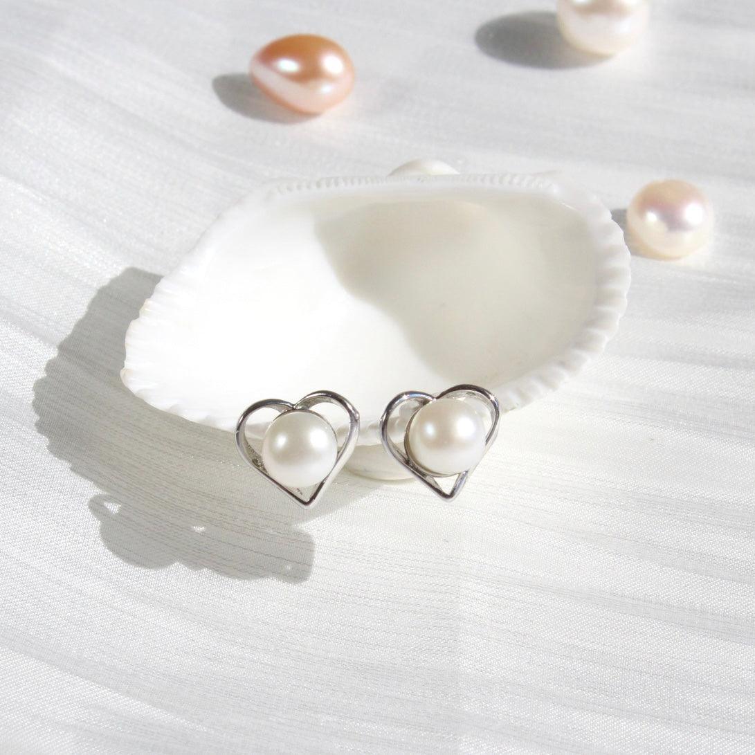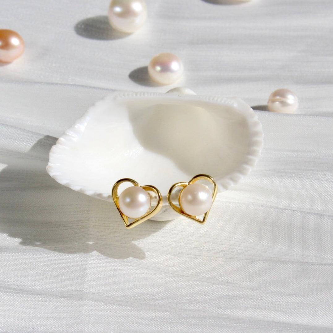 Classic yet playful heart-shaped stud earrings, adorned with delicate details and a precious freshwater pearl as the centerpiece. The stud earrings are available in two versions—either with high-quality white gold or 18k yellow gold plating. They bring timeless elegance to any outfit.