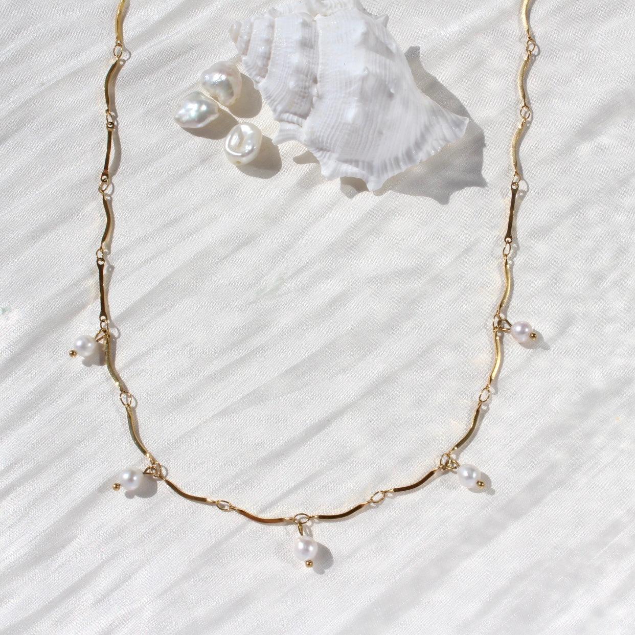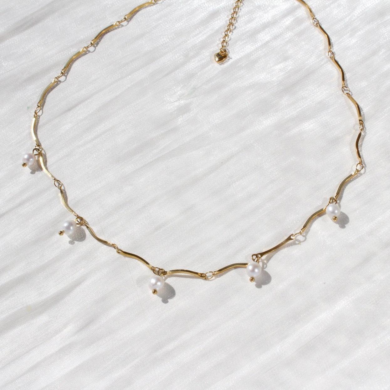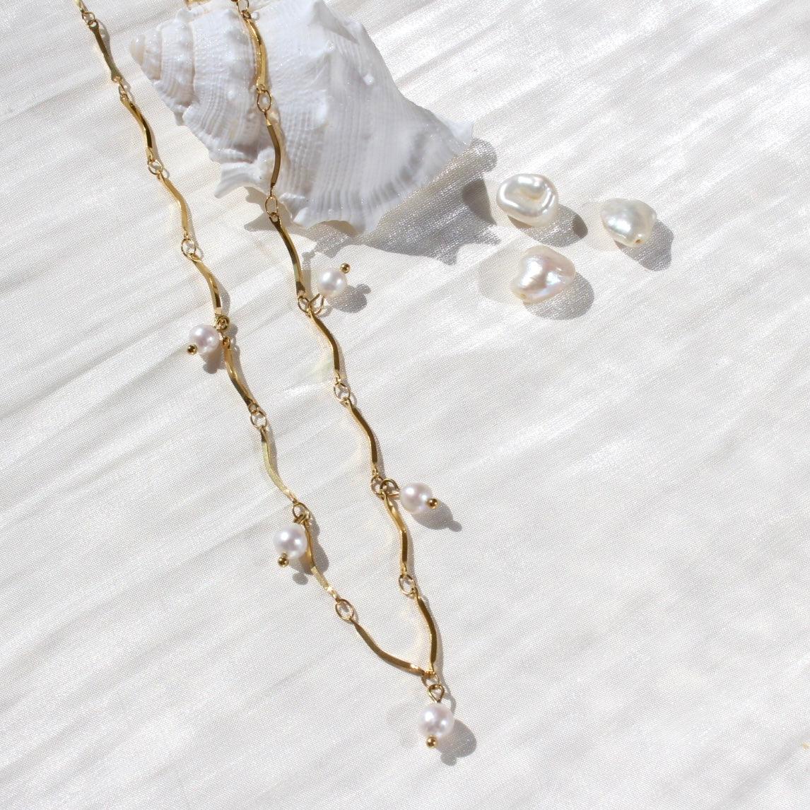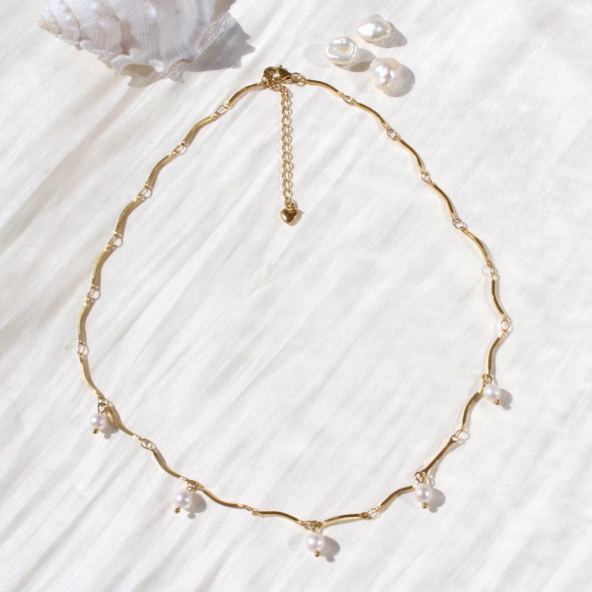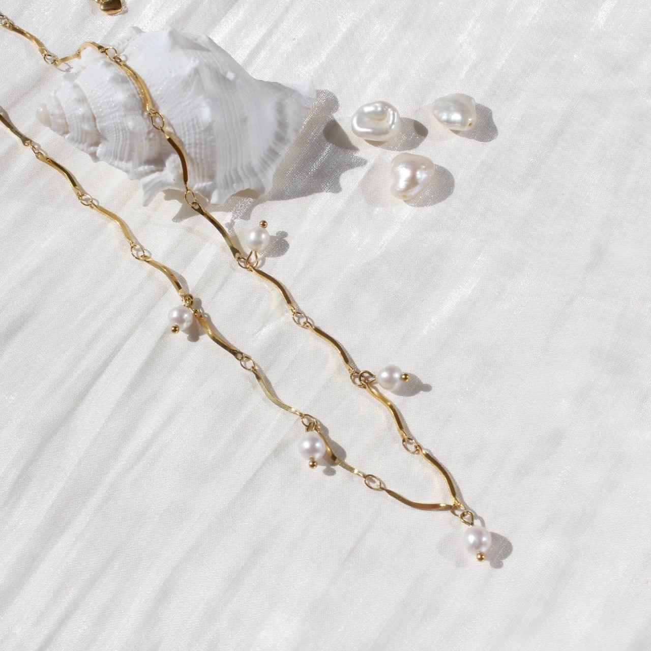The pearls are sourced from high-quality freshwater cultures. The chains are made of high-quality stainless steel, finished with a durable 18k gold plating. The material is water-resistant and colorfast—ideal for everyday wear and special occasions. The necklace is available in three lengths: 36cm, 38cm, and 40cm, each complemented by a 6cm extension chain for maximum flexibility.
