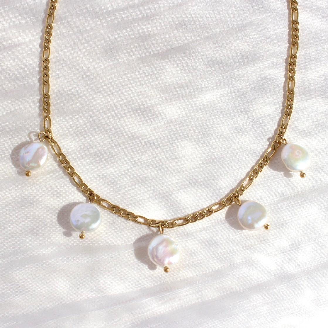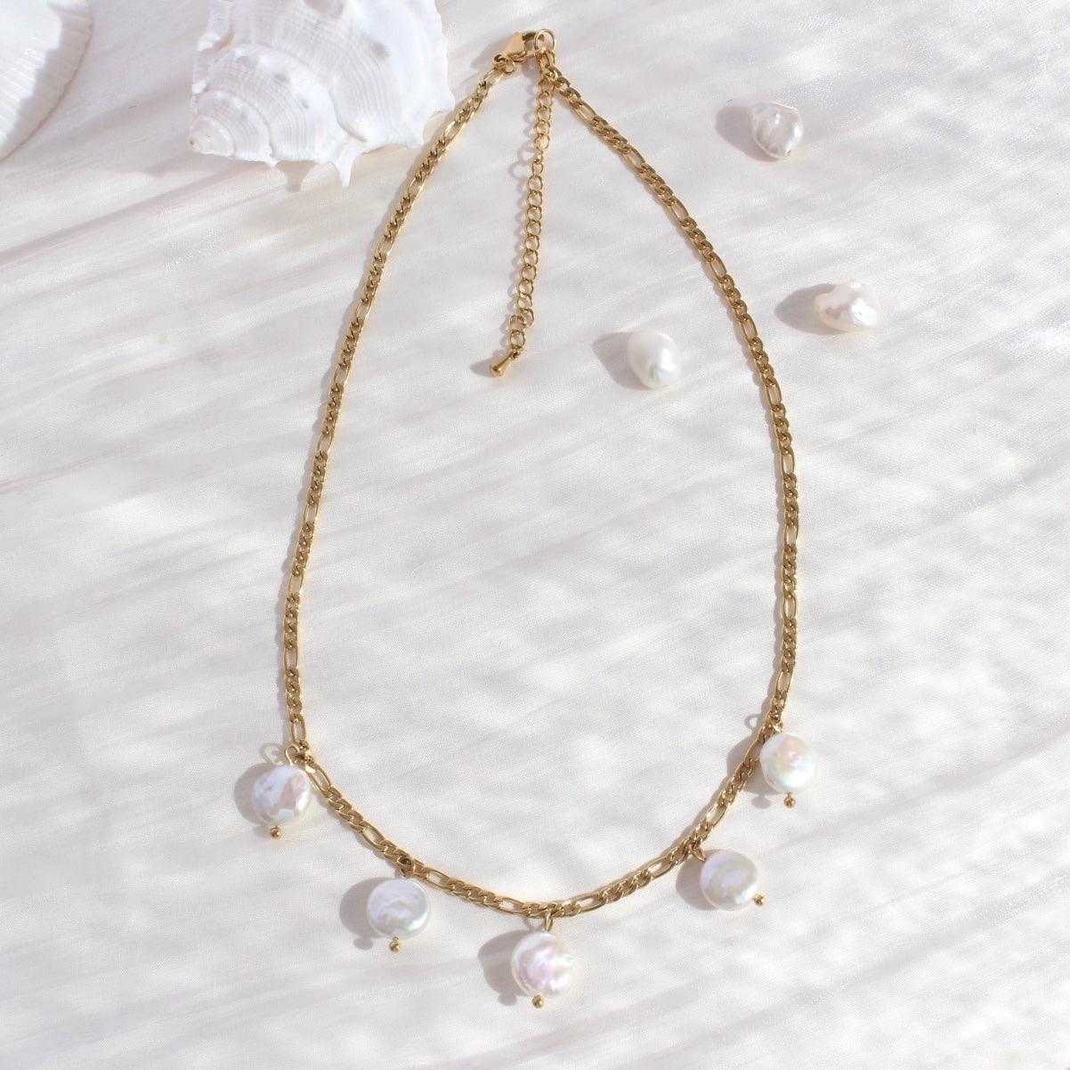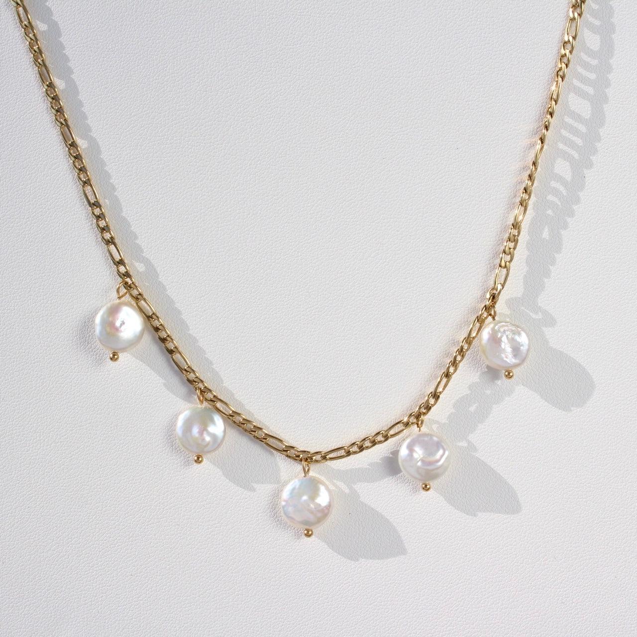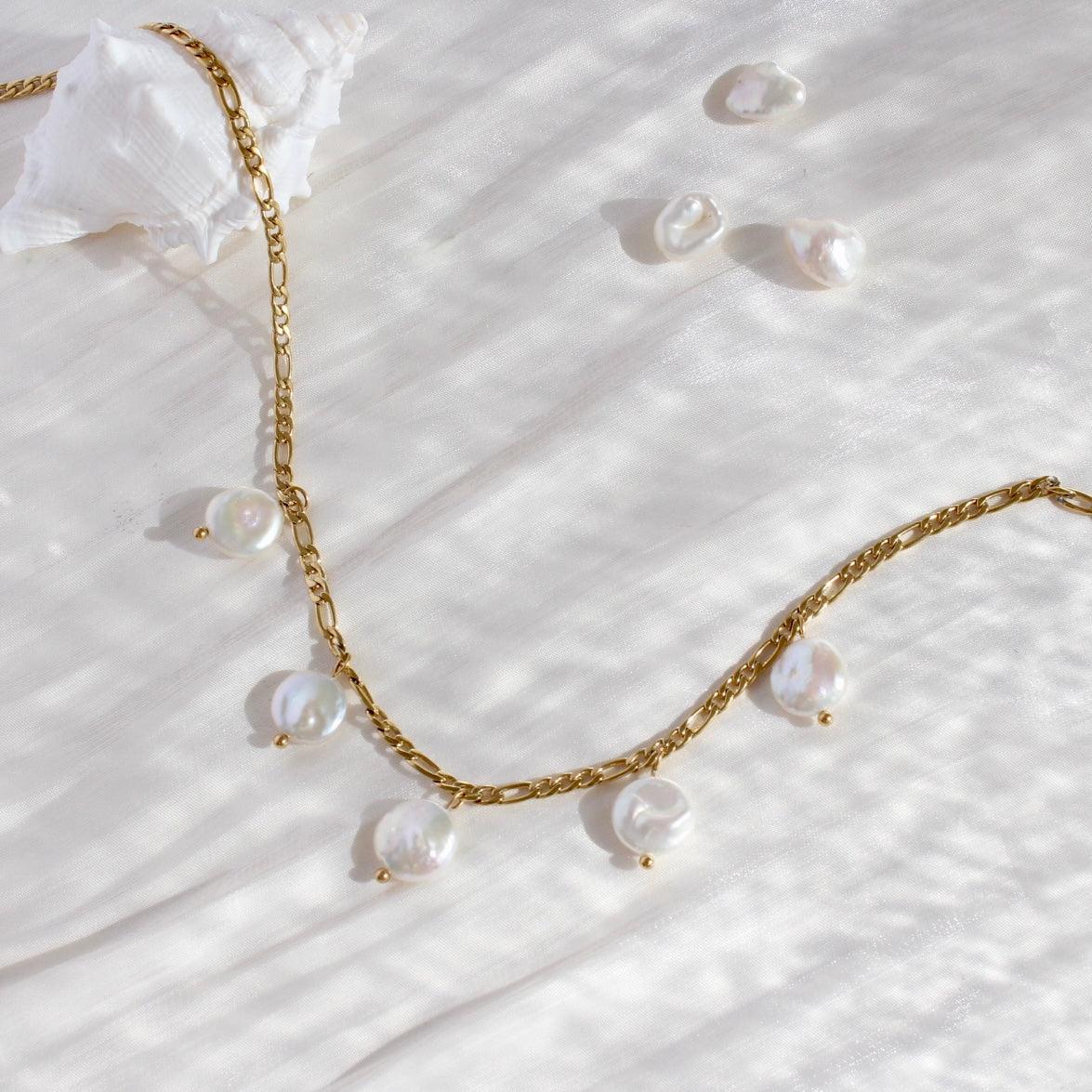 Ainara, cinq perles baroques brillantes en forme de bouton, chacune unique par sa forme et son éclat, confèrent à ce collier son caractère unique. Les perles d'eau douce naturelles ont été soigneusement sélectionnées et s'harmonisent harmonieusement pour créer un design à la fois moderne et intemporel.