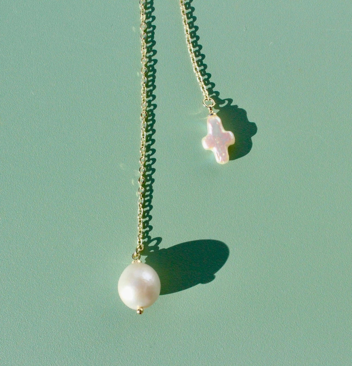 | perle | Véritables perles (en forme de goutte, (Croix) provenant de l'élevage en eau douce |