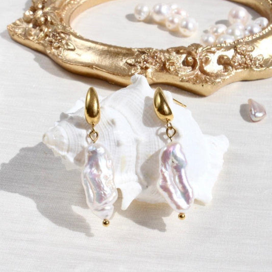 Rayne | Grandi ganci per le orecchie con perle barocche a bottone