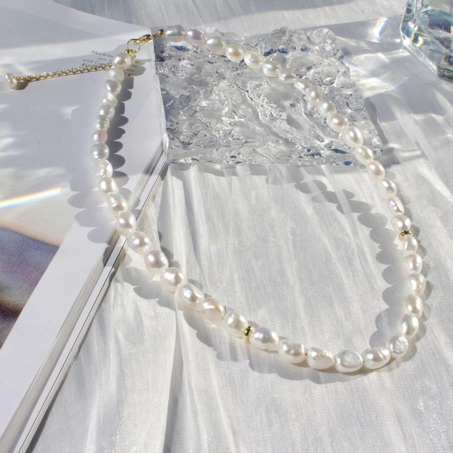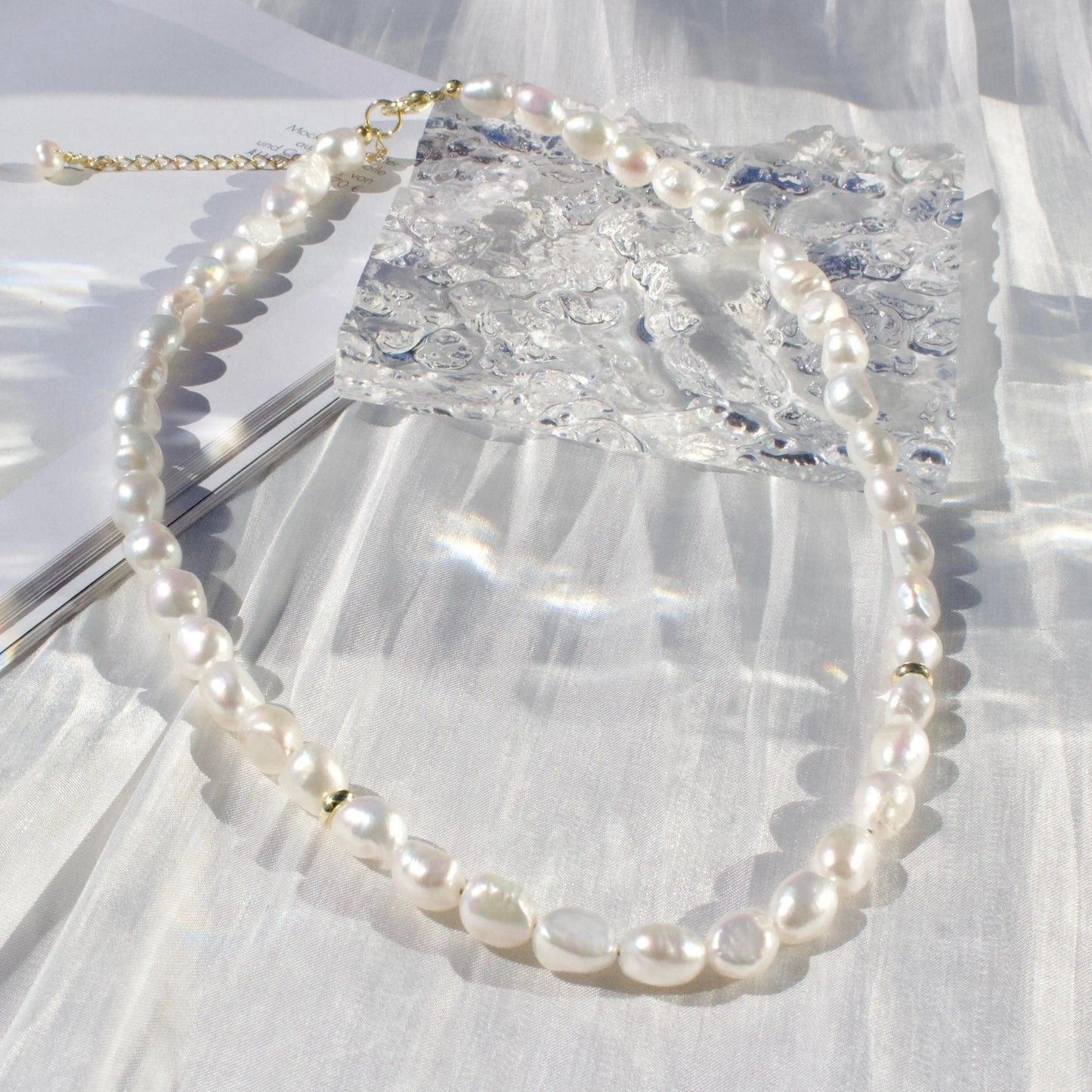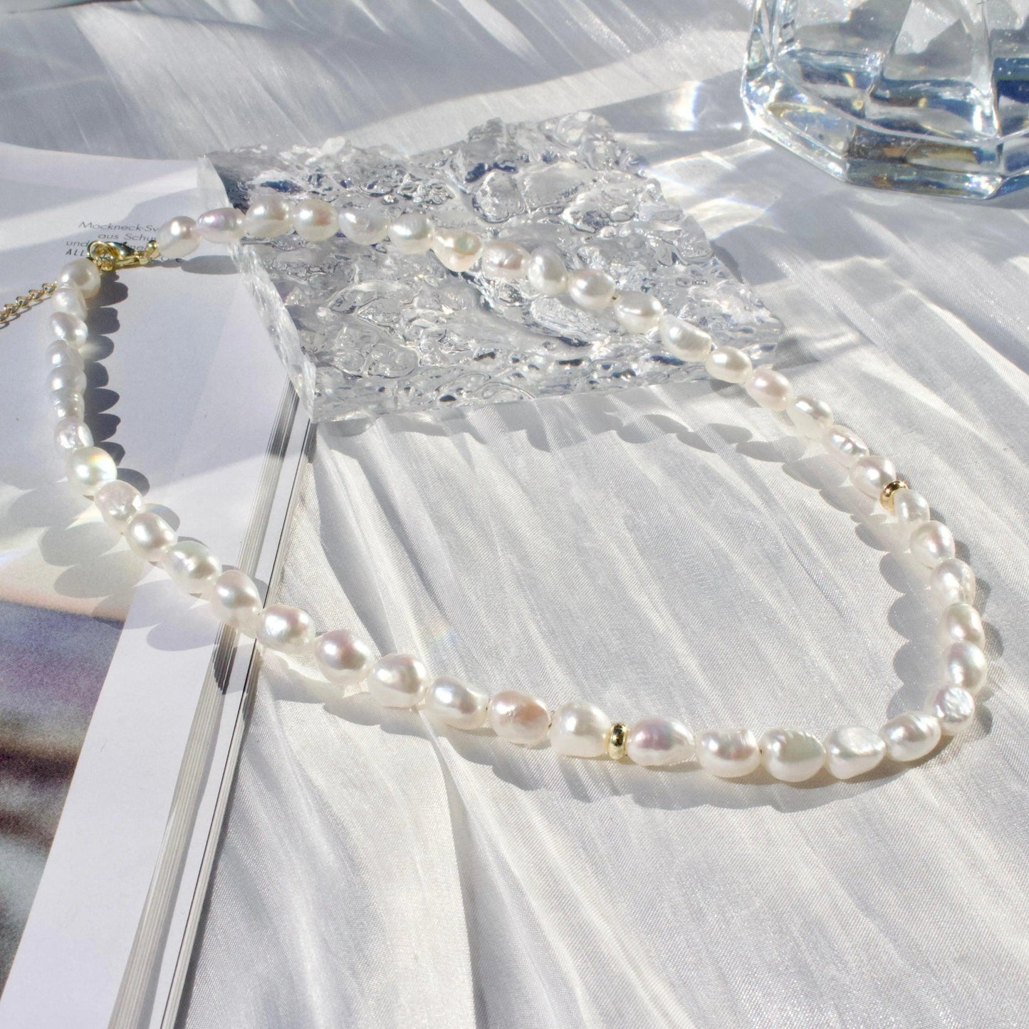 Elegante collana di perle fatta a mano con perle vere uniche e placcata in vero oro 18k. Design semplice ma classico.