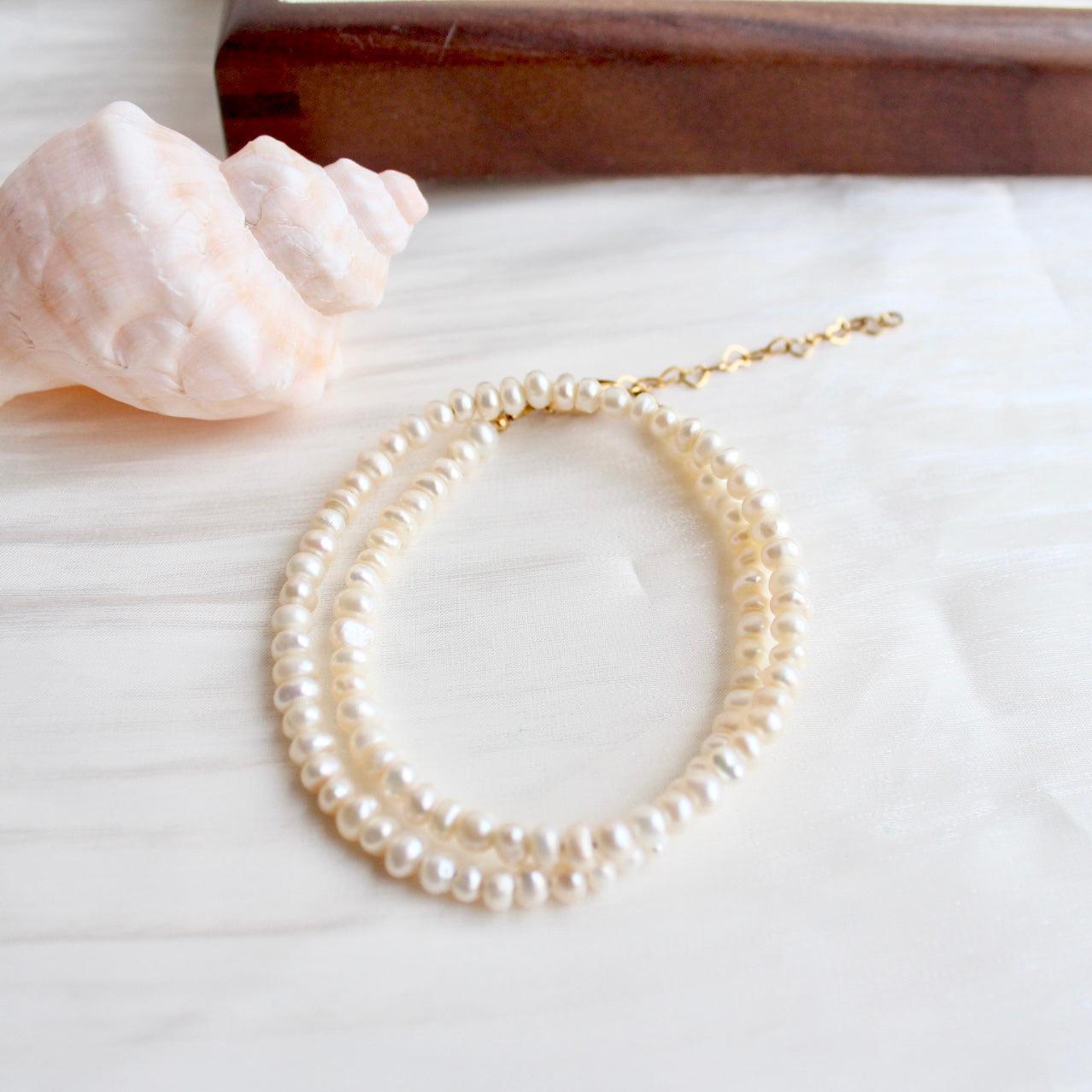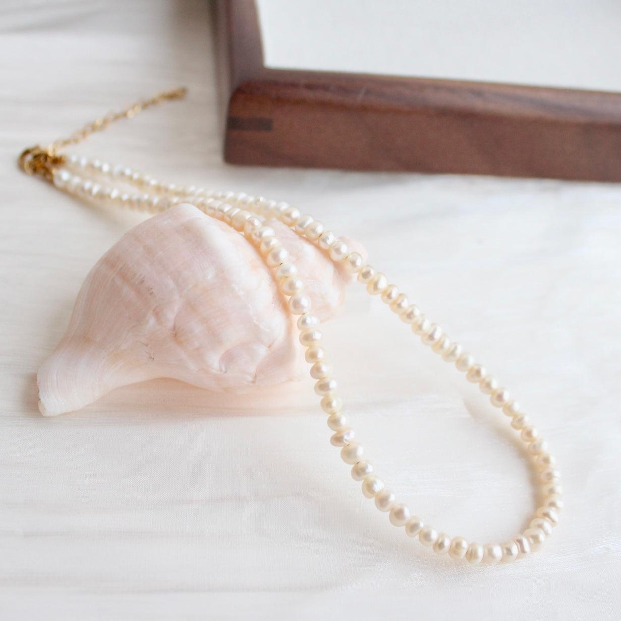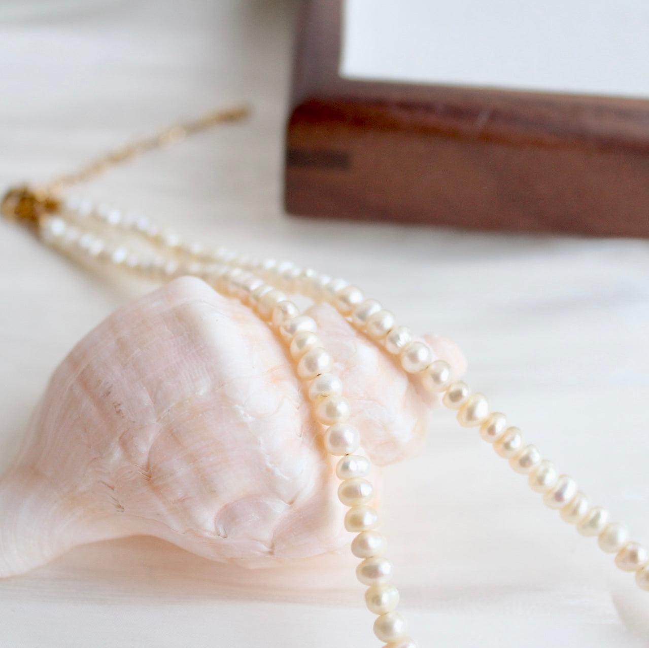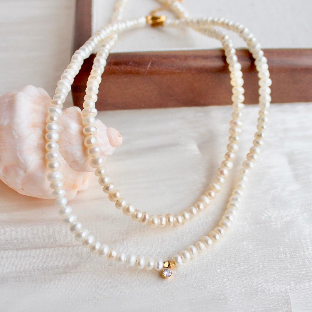Elegante collana di perle fatta a mano con perle vere uniche e placcatura in vero oro 18 carati. Un design semplice ma classico.