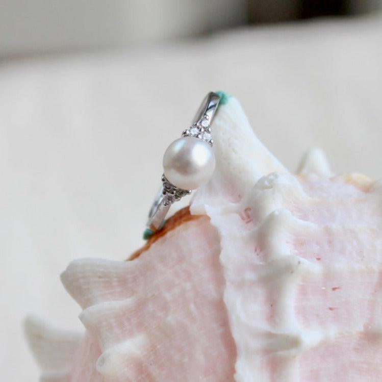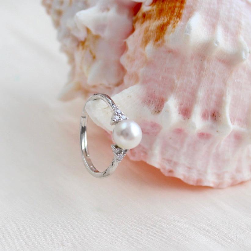 Un anello con perla classico e senza tempo realizzato in argento sterling. Un anello placcato in oro bianco con perle d'acqua dolce naturali rotonde impeccabili. Le perle misurano circa 6 mm e la dimensione dell'anello è regolabile.