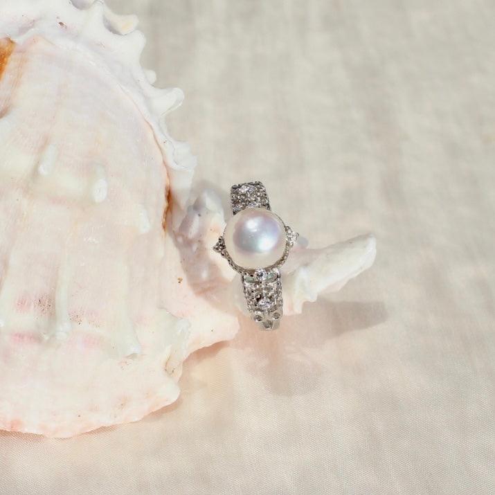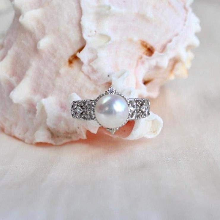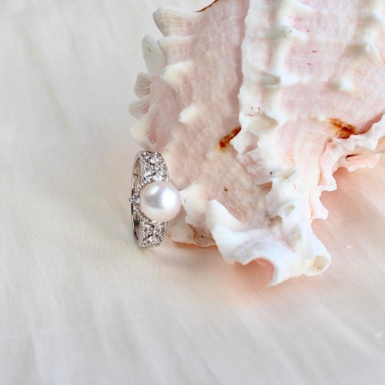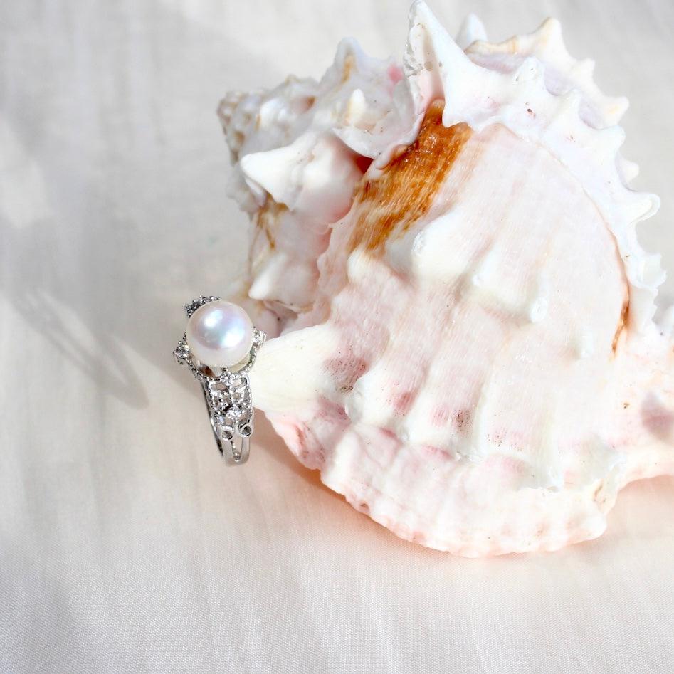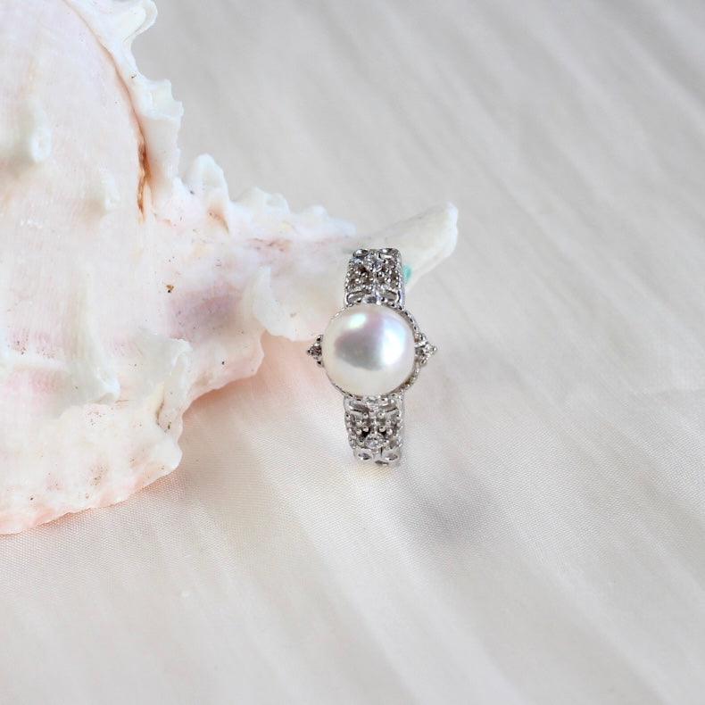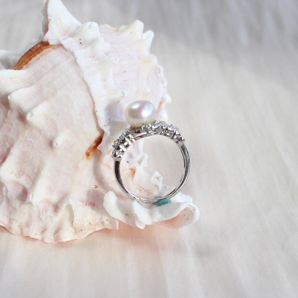 Un anello con perla classico e senza tempo realizzato in argento sterling. Un anello placcato in oro bianco con perle d'acqua dolce naturali rotonde impeccabili. Le perle misurano circa mm e la dimensione dell'anello è regolabile.