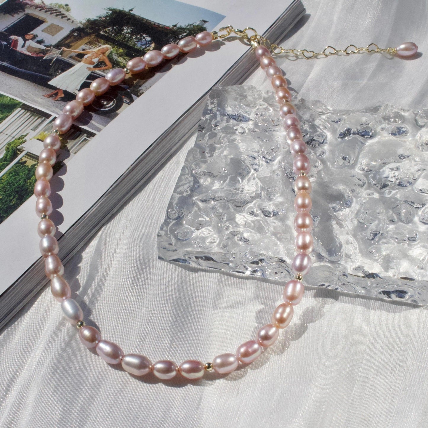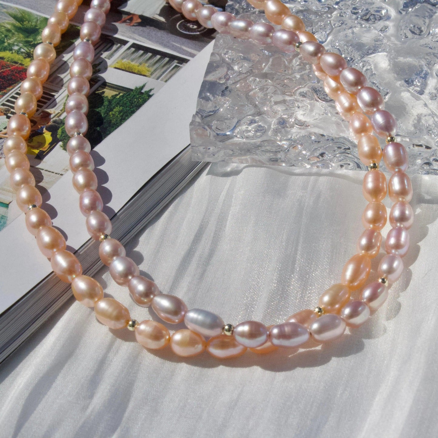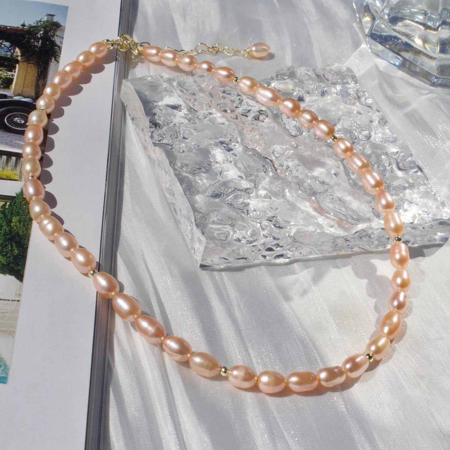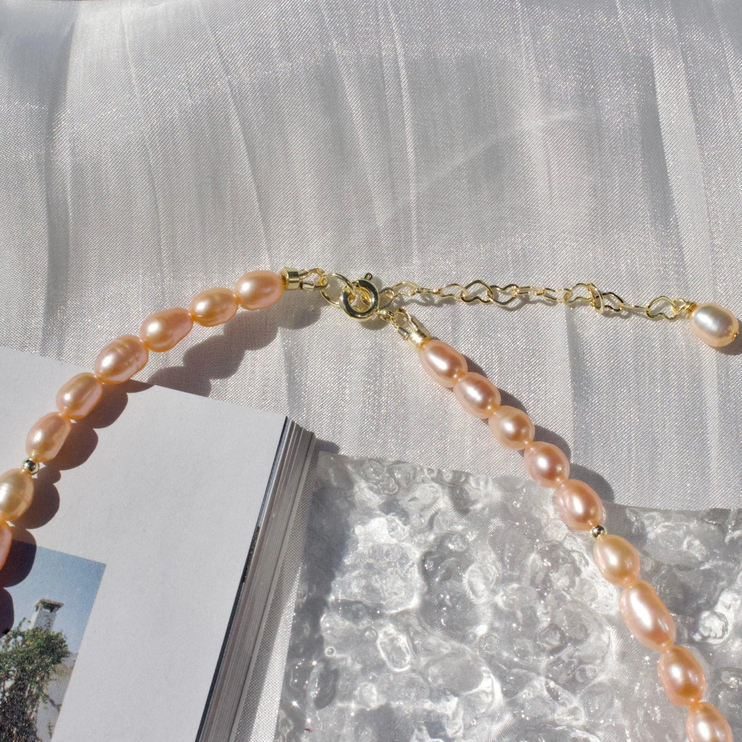 Elegante collana di perle fatta a mano con perle vere uniche e placcata in oro vero 18 carati. Design semplice ma classico.
