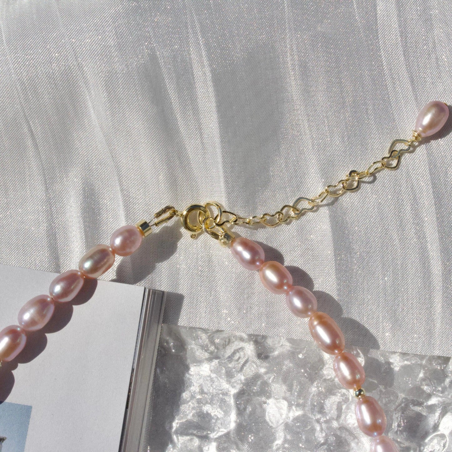 Questa bellissima collana è composta da perle d'acqua dolce con un diametro di circa 5,5 mm. Le perle sono di colore naturale, di forma ovale, con un'ottima lucentezza. La lunghezza della catena è di 45 cm, la catena di perle di 38,5 cm più la catena di estensione di 6,5 cm. Con la catena di estensione extra lunga, la lunghezza può essere regolata secondo necessità.