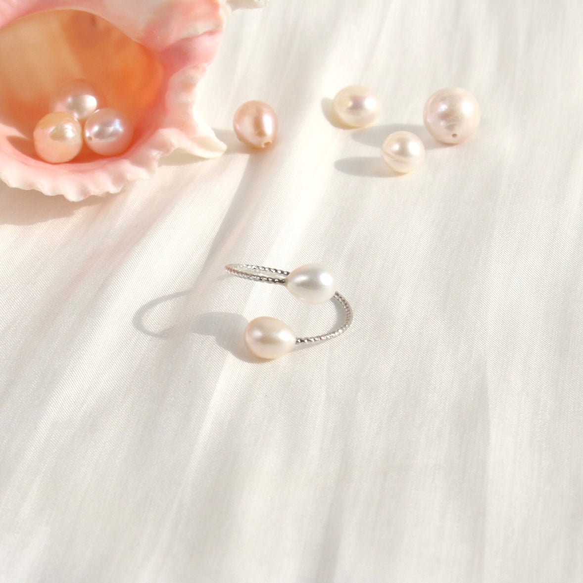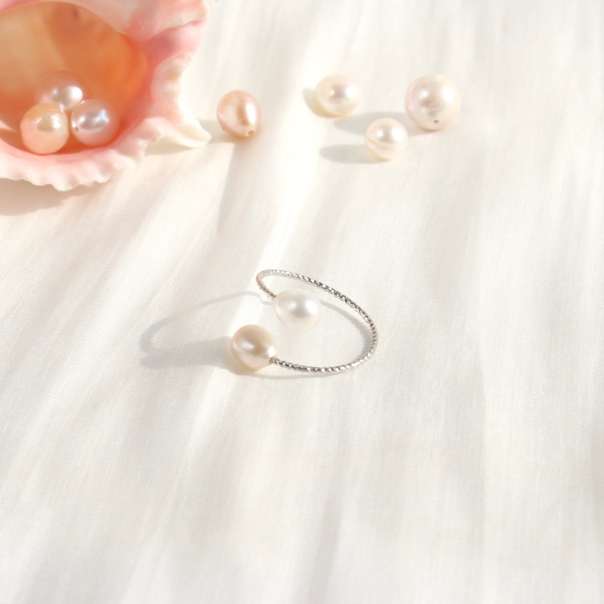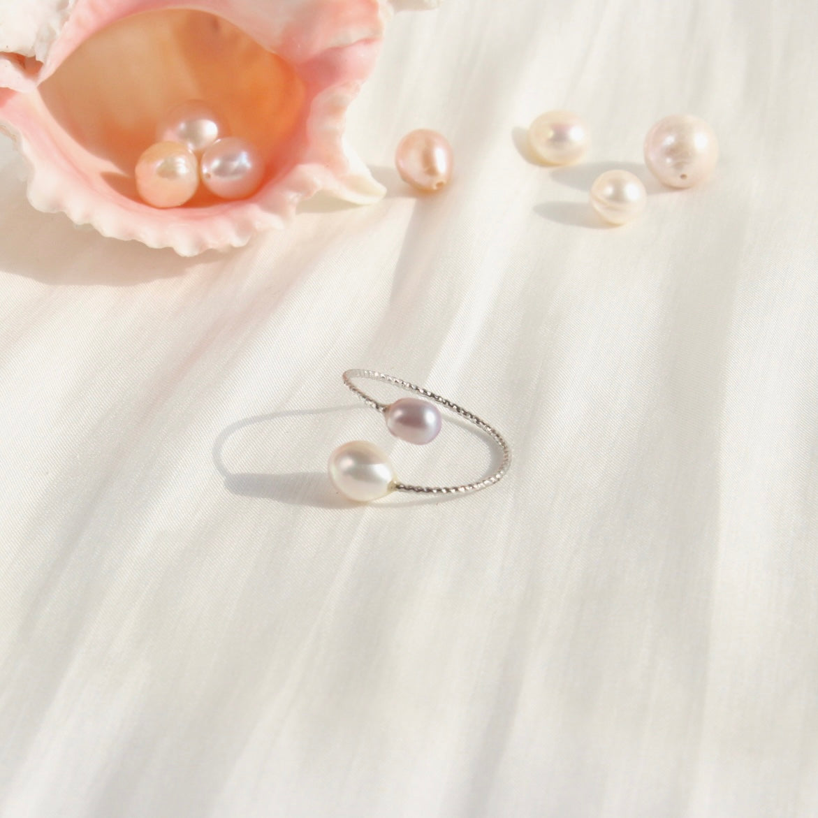 Gefasst sind die Perlen in einem weissgold-vergoldeten, grössenverstellbaren Ring, der sich angenehm tragen lässt und sich jeder Hand anpasst. Dieses Schmuckstück vereint Schlichtheit und Eleganz auf höchstem Niveau – ein stilvoller Begleiter im Alltag und ein edles Highlight für besondere Anlässe.