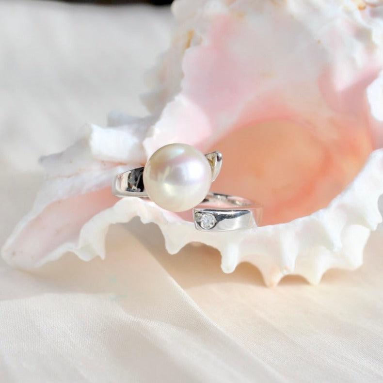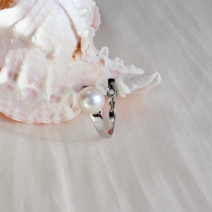 Annie ist eine klassische und zeitlose Version eines Perlenrings aus Sterlingsilber. Der Ring ist offen designt und hat eine Weissgold Beschichtung. Auf der einen Seite des Rings befindet sich eine makellose weisse 8.5 mm grosse hochwertige Süsswasserperle und auf der anderen Seite ein funkelnder Zirkonia. Die Perle wird aus hochwertigen, makellosen Süsswasserperlen ausgewählt, die mit ihrem eigenen kristallinen Schimmer glänzen und einen leichten rosa Glanz haben, der sie besonders funkelnd und auffällig macht. Das harmonische Zusammenspiel von Perle und Zirkonia macht diesen Ring zu einem exquisiten Schmuckstück, das Ihre natürliche Eleganz hervorhebt und jedem Outfit einen Hauch von Luxus verleiht.