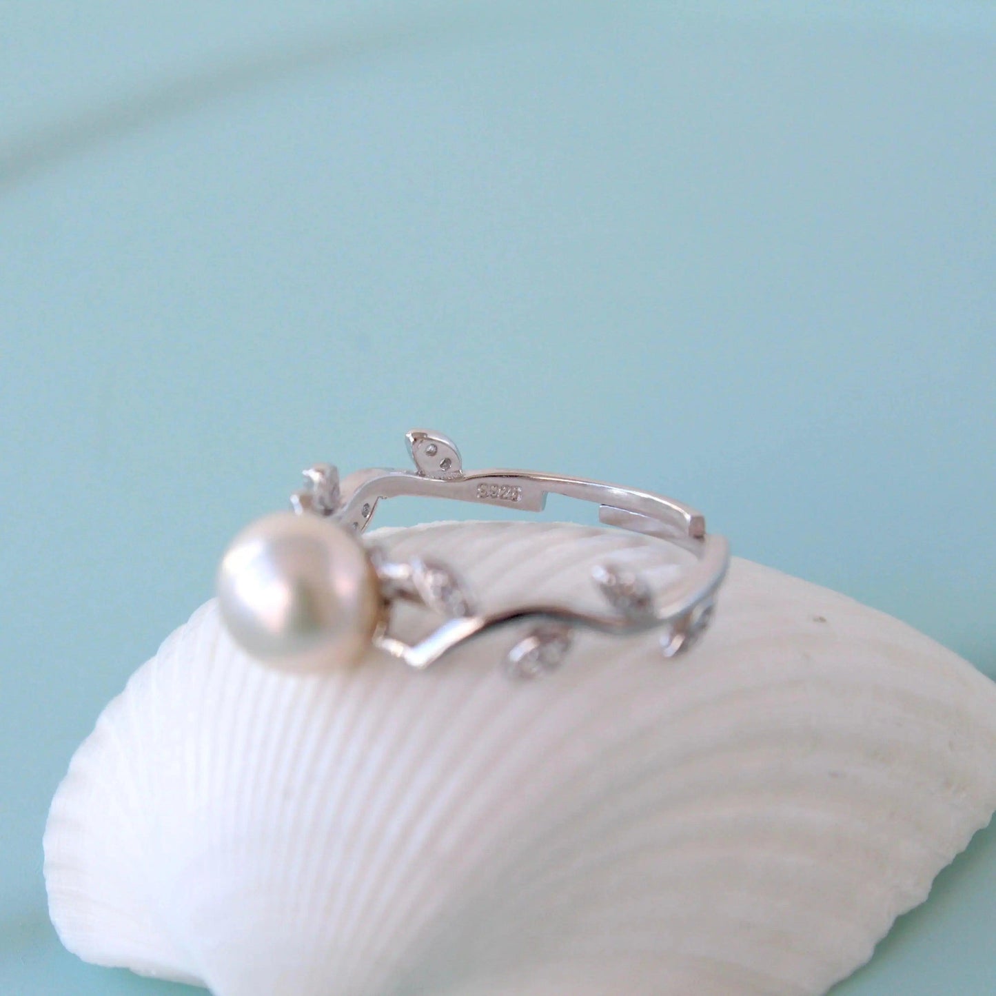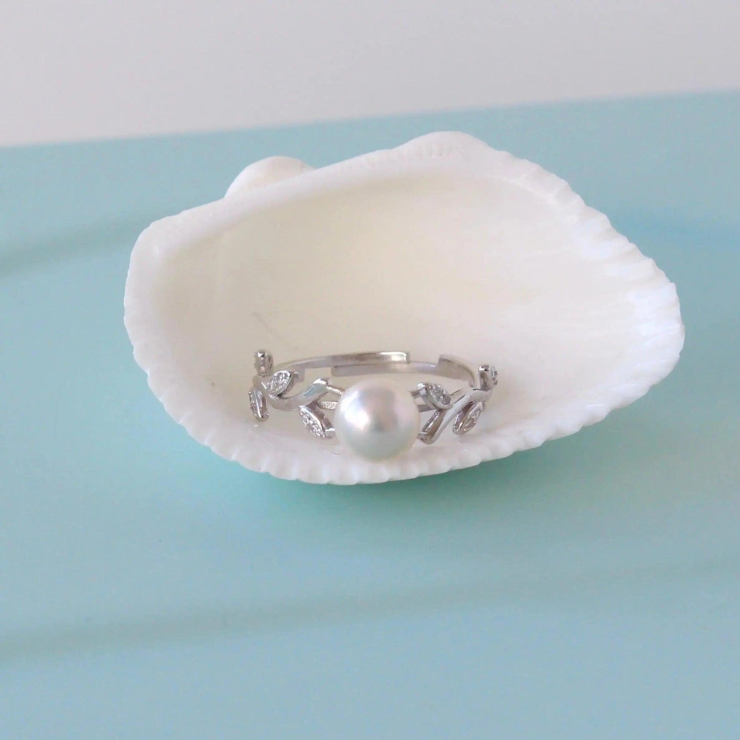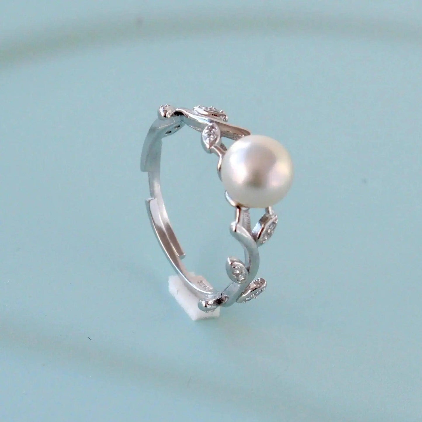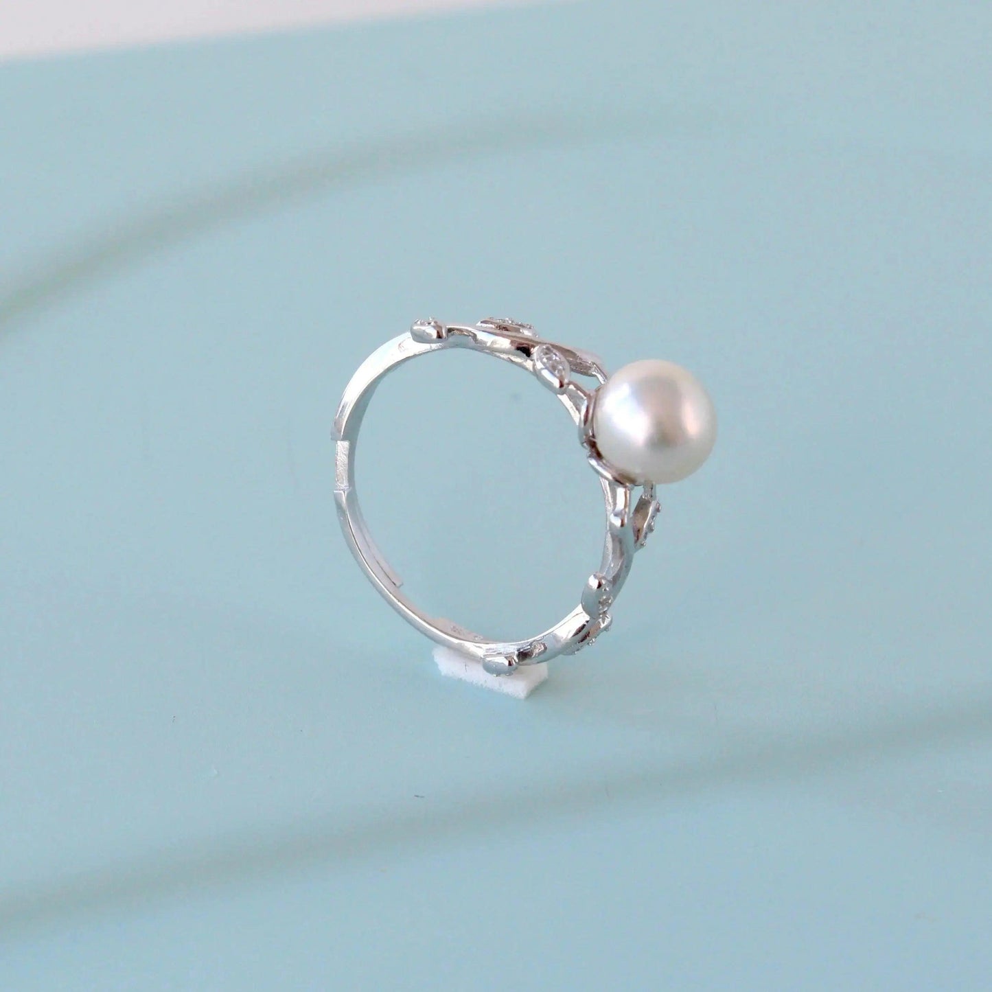 Ein klassischer und zeitloser Perlenring aus Sterlingsilber. Ein mit Weissgold plattierter Ring mit runden makellosen natürlichen Süsswasserperlen. Die Perlen sind ca.7 mm gross und der Ring ist in der Grösse verstellbar.