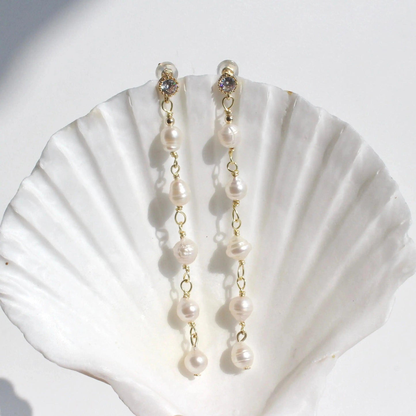 Stilvoller und schöner handgefertigter Perlenohrschmuck. Hergestellt aus einzigartigen natürlichen Süsswasserperlen. Ohrhänger besteht aus 6mm grossen Perlen. Die Ohrhänger Länge ist ca. 7cm. Eine klassische und elegante Form, die sich für das Tragen an Wochentagen oder für besondere Anlässe eignet.