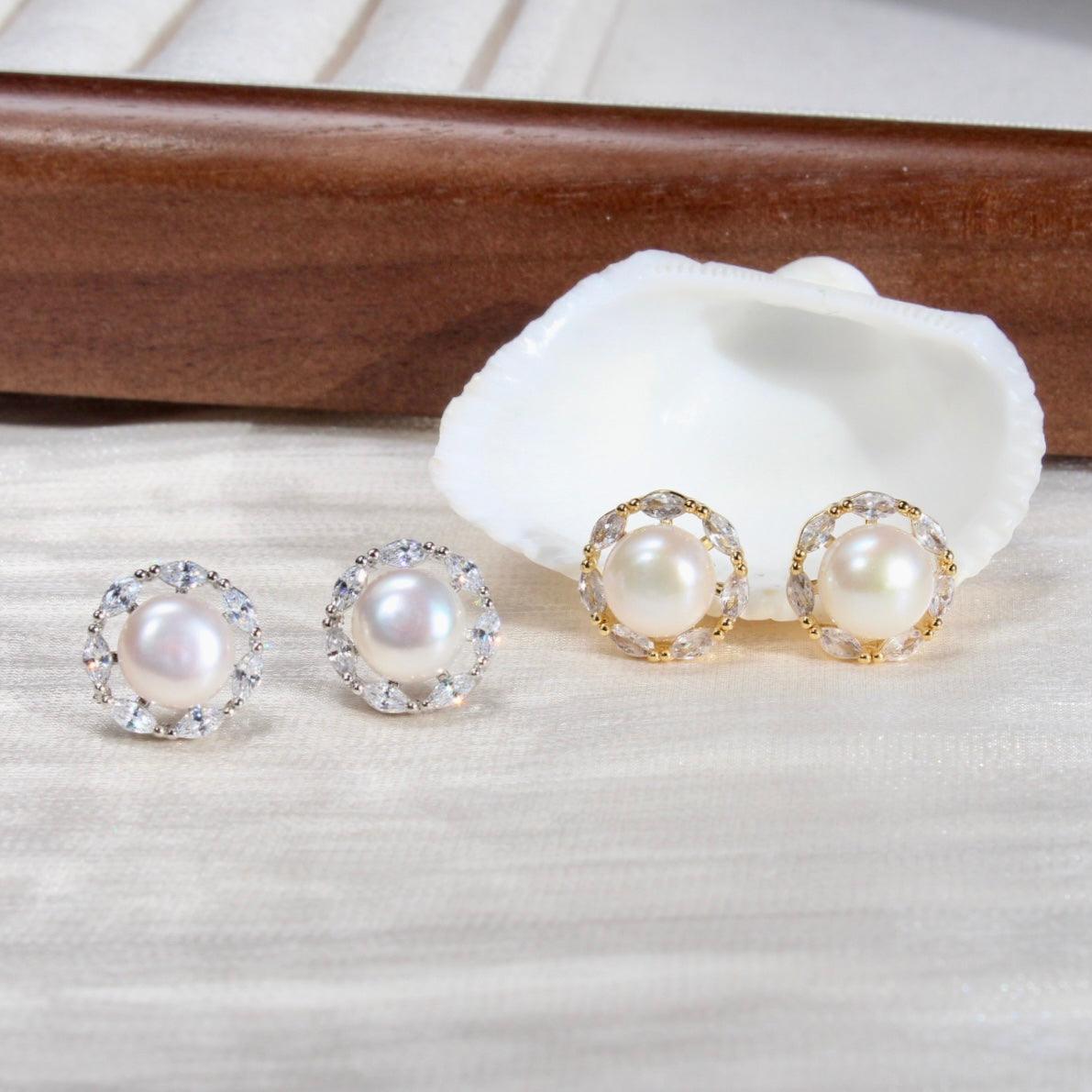Esther ist der leuchtende Star der Süsswasserperlen-Ohrstecker-Kollektion. Die klassische, zeitlose runde Form ist mit funkelnden Zirkonia und weissen Süsswasserperlen geschmückt. Die Ohrstecker sind lebendig und funkelnd, ohne aufdringlich zu sein, und zudem 18 Karat Echt- oder Weissgold vergoldet.