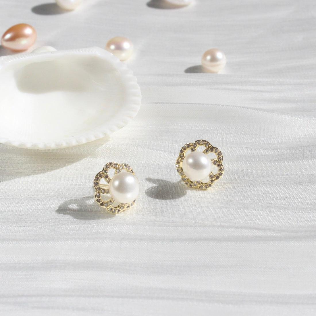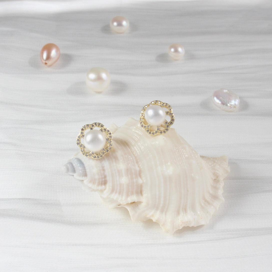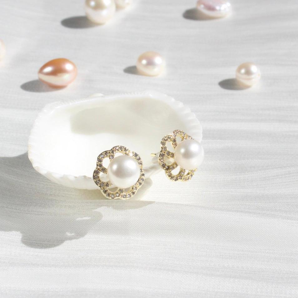 Juliette, wie eine zarte, elegante Blüte entfalten sich diese Ohrstecker: Funkelnde Zirkonia setzen strahlende Akzente, während eine weisse Süsswasserperle als Mittelpunkt sanft schimmert. Die Komposition aus floraler Anmut und edlem Glanz verleiht jedem Moment einen Hauch von Romantik und zeitloser Schönheit.