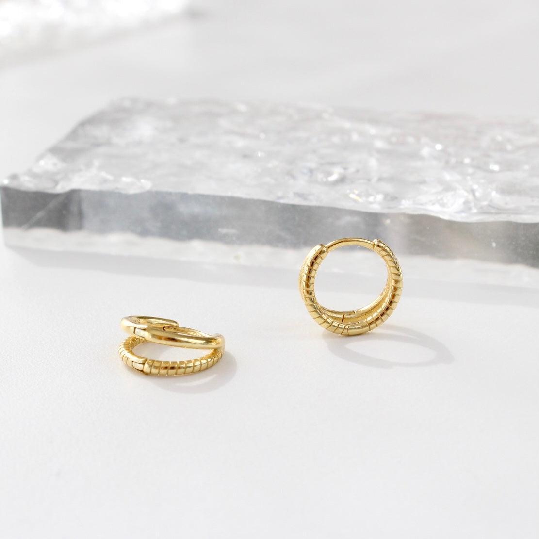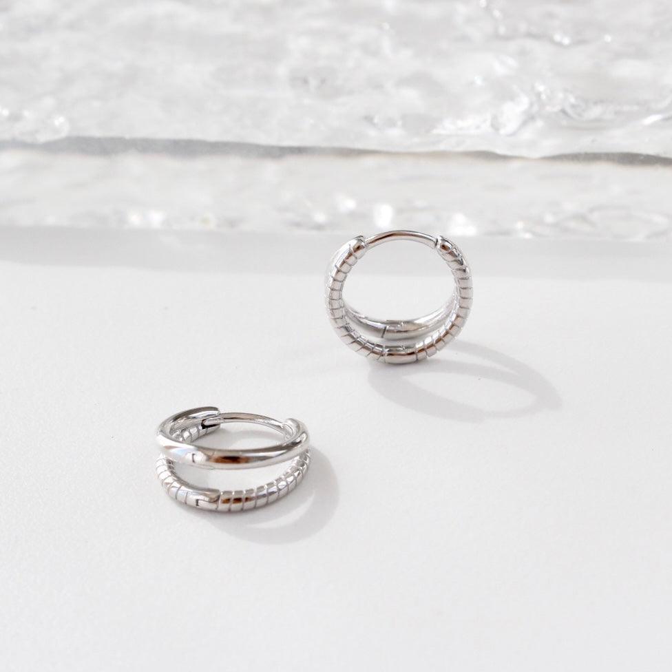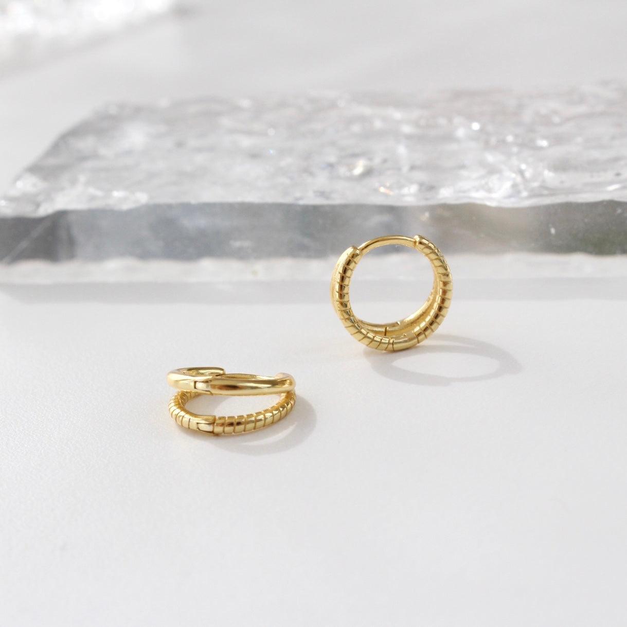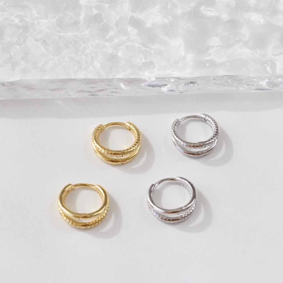 Dieser schlichten und stilvollen doppellagigen Creolen sind aus Sterlingsilber gefertigt und bestechen durch seinen einzigartigen und modernen Stil. Die Ohrringe sind in zwei Farbvarianten erhältlich: Die goldene Version ist mit 18 Karat vergoldet, um einen luxuriösen Glanz zu erzielen, während die silberne Version mit Weissgold vergoldet ist, um eine dezente und elegante Textur zu erhalten. Das doppellagige Design verleiht den Creolen Dimension und Stil, so dass sie sowohl im Alltag als auch zu besonderen Anlässen getragen werden können. Ihre klassische Schlichtheit kommt nie aus der Mode und macht sie zu einem Must-Have in jedem Schmuckkästchen.