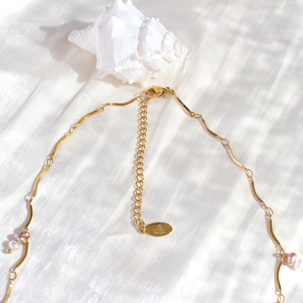 Die Perlen stammen aus hochwertiger Süsswasserzucht. Die Ketten bestehen aus hochwertigem Edelstahl, veredelt mit einer langlebigen 18k Echtvergoldung. Das Material ist wasserfest und farbbeständig – ideal für den täglichen Gebrauch und den besonderen Moment. Die Halskette ist in drei Längen erhältlich: 36cm, 38cm und 40cm, jeweils ergänzt durch eine 6cm Verlängerungskette für maximale Flexibilität.